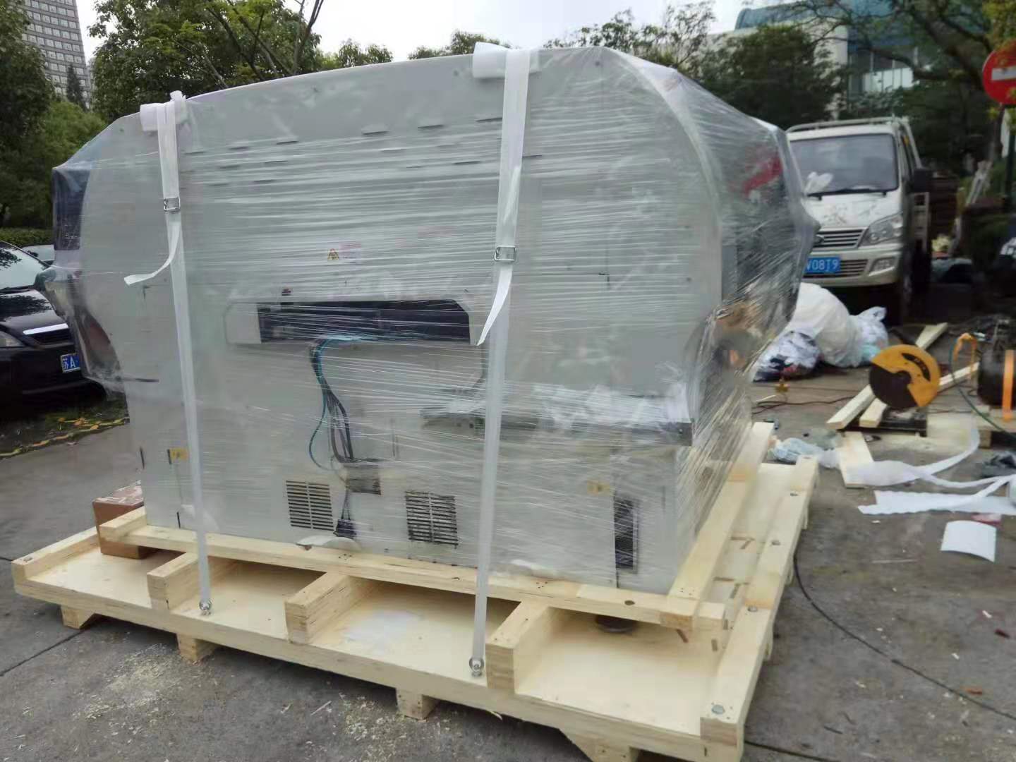 工人们正在把机器上卡板包装